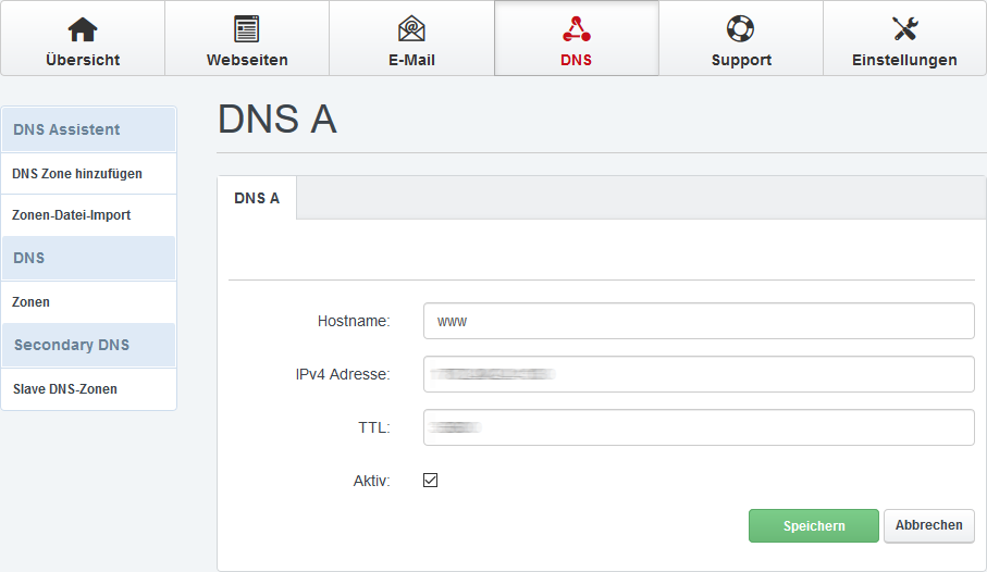IPv4 Adresse: Inhalt zum Ziel (IP oder domain.name. oder A-Name-Angabe)