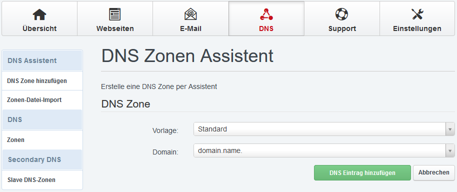Speichern Sie Ihre Eingaben mit DNS Eintrag hinzufügen.