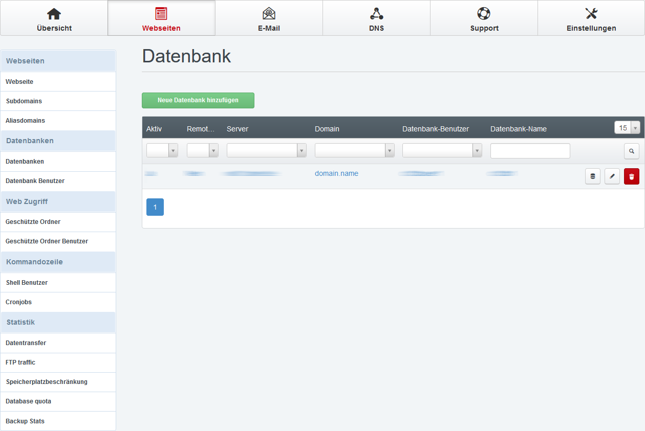 Es werden Ihre Datenbanken aufgelistet, welche zu Webseiten Domains hinzugefügt sind.